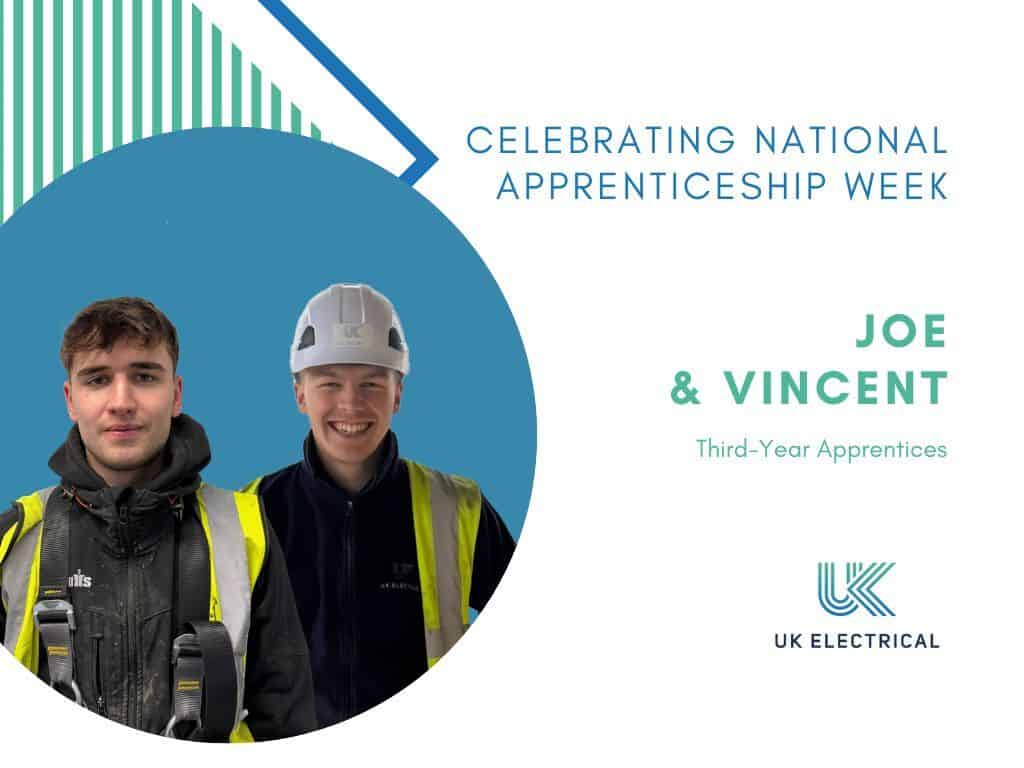As part of National Apprenticeship Week 2025, we’re continuing to highlight the incredible talent within our apprenticeship programme. Today, we’re shining the spotlight on third-year apprentices Joe and Vincent, who are taking on bigger responsibilities and preparing for their final year at UK Electrical Installations (UKE).